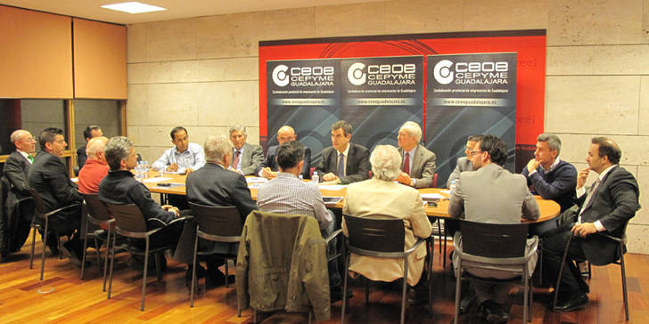 El candidato del PP a la reelección ha mantenido un encuentro con el comité de dirección de CEOE-Cepyme Guadalajara
