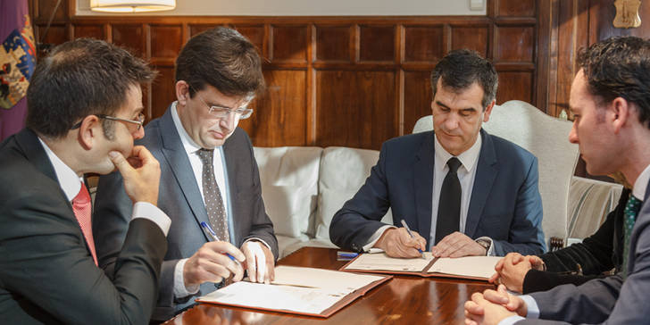 El alcalde, Antonio Román, en nombre del Ayuntamiento de Guadalajara, y Carmelo García, en representación de la Universidad de Alcalá, han suscrito un convenio de colaboración para la denominada Universidad de Mayores.