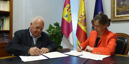 La presidenta de la Diputación, Ana Guarinos, ha firmado la addenda al convenio de colaboración con el alcalde de Zorita de los Canes, Dionisio Muñoz, para seguir apoyando la actividad en el Parque Arqueológico de Recópolis.