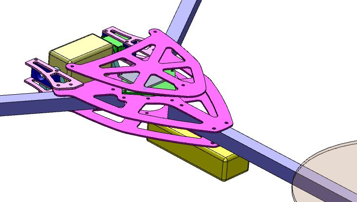 El primer paso para la modelación del tricóptero es la obtención del esquema de las fuerzas que actúan en el sistema a partir del cual realizaremos los cálculos respectivos basándonos en el teorema de la cantidad del movimiento y teorema del cambio cinemático del momento, el resultado obtenido será un sistema de ecuaciones con seis ecuaciones las cuales describen el movimiento del tricóptero en el espacio, aparte de estas ecuaciones, se añaden tres más, las cuales describen las características electromecánicas del motor, en total obtenemos un sistema de nueve ecuaciones, sistema con el cual se procederá al desarrollo de un algoritmo el cual posteriormente permitirá la creación de un programa el cual sea capaz de calcular tales parámetros como velocidades lineales, angulares, momentos y ángulos los cuales corresponden a una cierta trayectoria dada en un tiempo determinado. La modelación matemática antes descrita es realizada en el paquete matemático MathCAD. Posteriormente fue realizado el análisis de la construcción, en base al cual fue modelado el modelo tridimensional del tricóptero el cual además tiene la capacidad de cambiar la orientación del rotor posterior tanto en el eje horizontal como en el vertical, este tipo de construcción fue realizado para la obtención de mejores resultados en el área de manejo, estabilidad y aprovechamiento de la fuerza de empuje para un vuelo más efectivo y económico ahorrando de esta manera el consumo de energía por parte del tricóptero logrando de esta manera además un aumento considerable en el tiempo de vuelo. Para la obtención del gráfico tridimensional fue empleado SolidWoks, luego de lo cual para la creación de los dibujos 2D utilizamos AutoCAD. El siguiente momento en la modelación del tricóptero es el desarrollo del sistema de control automático, para lo cual fue empleado el paquete matemático Matlab. Como último momento fue desarrollado el sistema de conexionado de los componentes electrónicos que intervienen en el sistema de control automático del tricóptero así como desarrollado el programa que será cargado al microcontrolador y que responderá por el movimiento autónomo del mismo así como de la toma de decisiones ante una u otra situación.