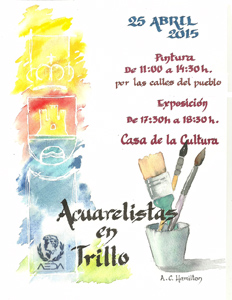 El próximo día 25 de abril cerca de cuarenta acuarelistas, convocados por la Agrupación Española de Acuarelistas (AEDA), con la colaboración del Ayuntamiento de Trillo, van a reflejar los paisajes ribereños en una jornada pictórica que comenzará a partir de las 11:00 horas de la mañana y terminará a las 14:00 horas.