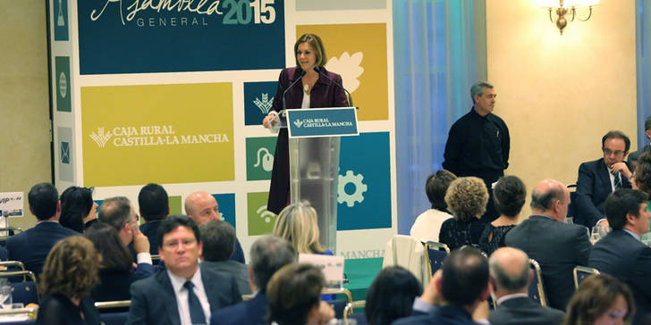 Durante su intervención esta noche en la Cena de Hermandad de Caja Rural-Castilla-La Mancha, María Dolores Cospedal ha reconocido el apoyo que esta entidad financiera ha brindado a la Cumbre Internacional del Vino (en sus dos ediciones), así como a todas aquellas iniciativas destinadas a poner en valor a nuestro sector agroalimentario.