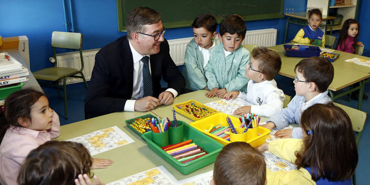 Durante la visita al Colegio Público Santa Brígida de Pozo de Guadalajara