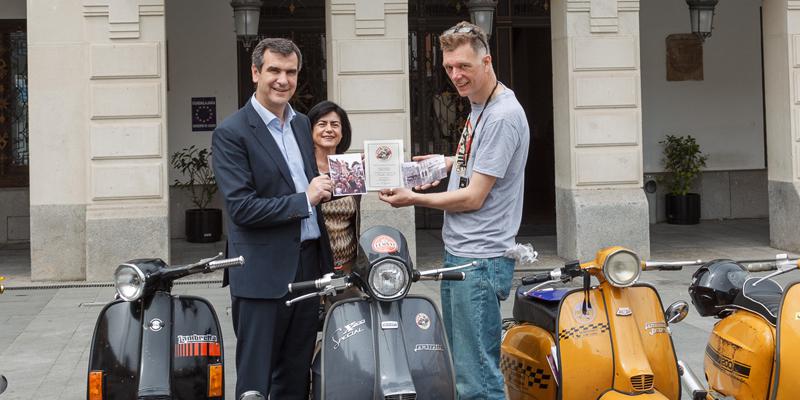 “Sticky” forma parte de un club de motocicletas Lambretta y con una de estas máquinas, concretamente una Lambretta 1968, ha empezado en Guadalajara un curioso viaje que le llevará por las ciudades con las que Nuneaton está hermanda. Junto a Guadalajara, el municipio inglés del Condado de Warwickshire está hermanado las ciudades de Roanne (Francia) y Parma (Italia), -hermanadas también con la nuestra- y la ciudad polaca de Nowy Sacz.
