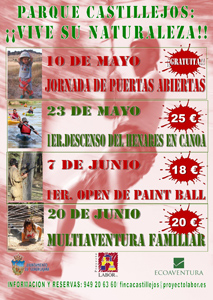 La jornada de puertas abiertas de este domingo servirá para presentar el programa de actividades elaborado para esta primavera, que incluye actividades de deportes de aventura (gymkhanas, tirolina o tiro con arco), paint ball, descenso en canoa, rutas guiadas o también la posibilidad de apuntar a los más pequeños de la casa a un campamento urbano en inglés que se ha preparado para la primera semana de julio dirigido a menores de 5 a 16 años.
