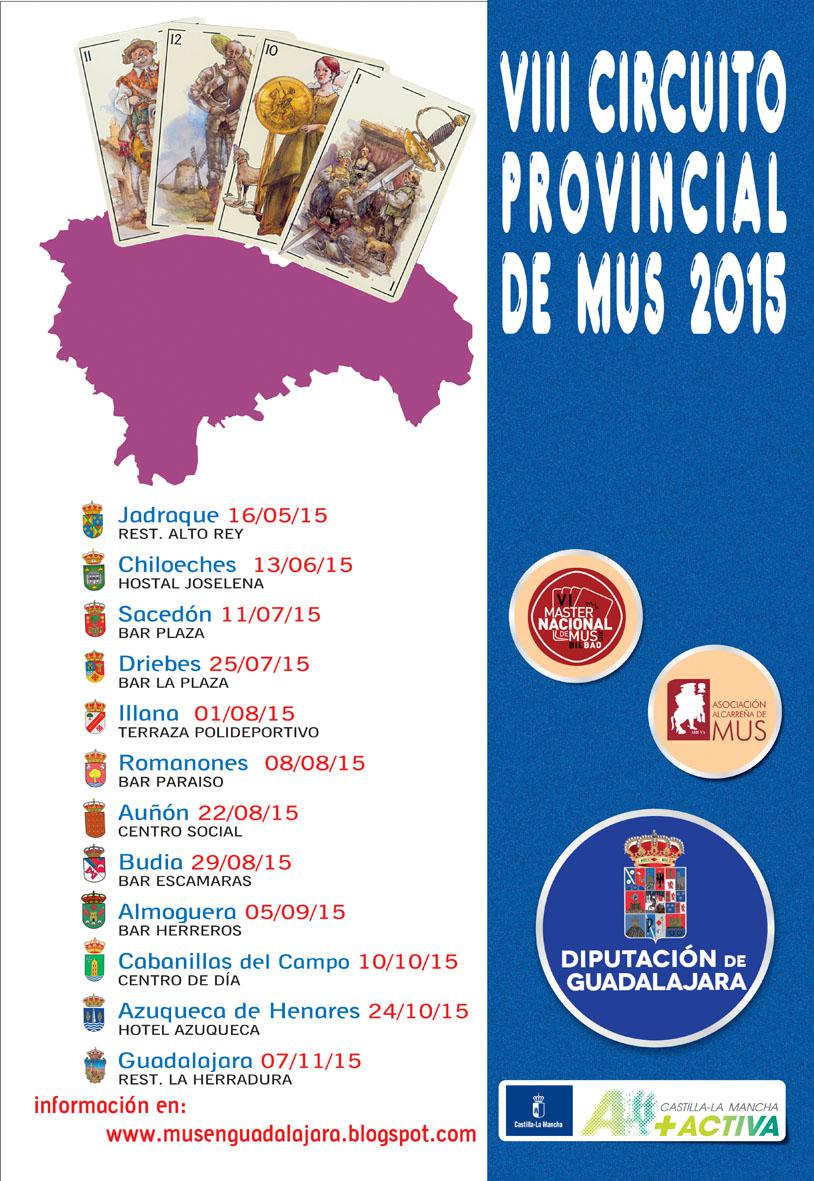 En cada una de las Fases Locales se jugará un mini torneo a partir de las 16:30 horas en el establecimiento mencionado: se jugarán a dos partidas perdidas a tres juegos ganados de 40 tantos. La pareja ganadora de cada Fase Local jugará invitada en representación de esa zona en el XXXIII Campeonato Provincial de Mus a jugar del 18 al 21 de noviembre de 2015 en Guadalajara. Asimismo, se conformará un ranking individual con los resultados de cada fase, y el primer clasificado, con su pareja, jugará en el Máster Nacional de Mus 2015 que se celebrará el 28 de noviembre en Bilbao. La Asociación Alcarreña de Mus será la encargada del desarrollo técnico del Campeonato y de sus Fases Locales.