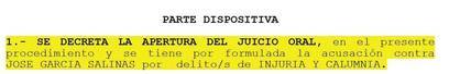 Por el delito de injurias José García Salinas tendría que pagar 3.600 euros