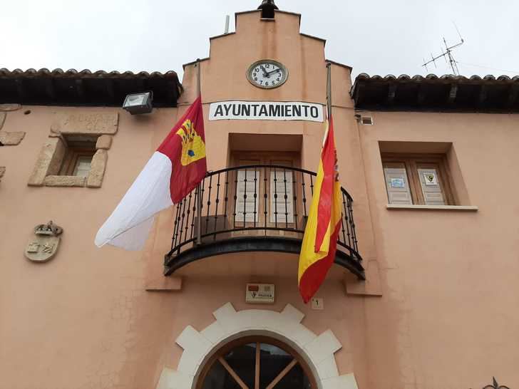 Las banderas izadas en el Ayuntamiento de Henche ondean a media asta desde el pasado lunes, 30 de marzo